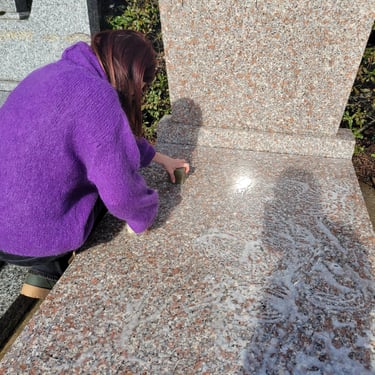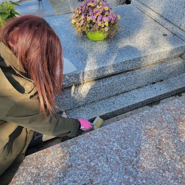 Nettoyage complet de la tombe (granit 2mx1m) avec des produits écologiques :