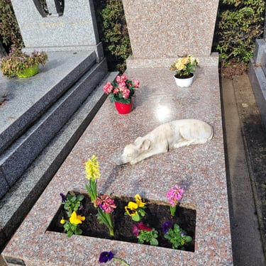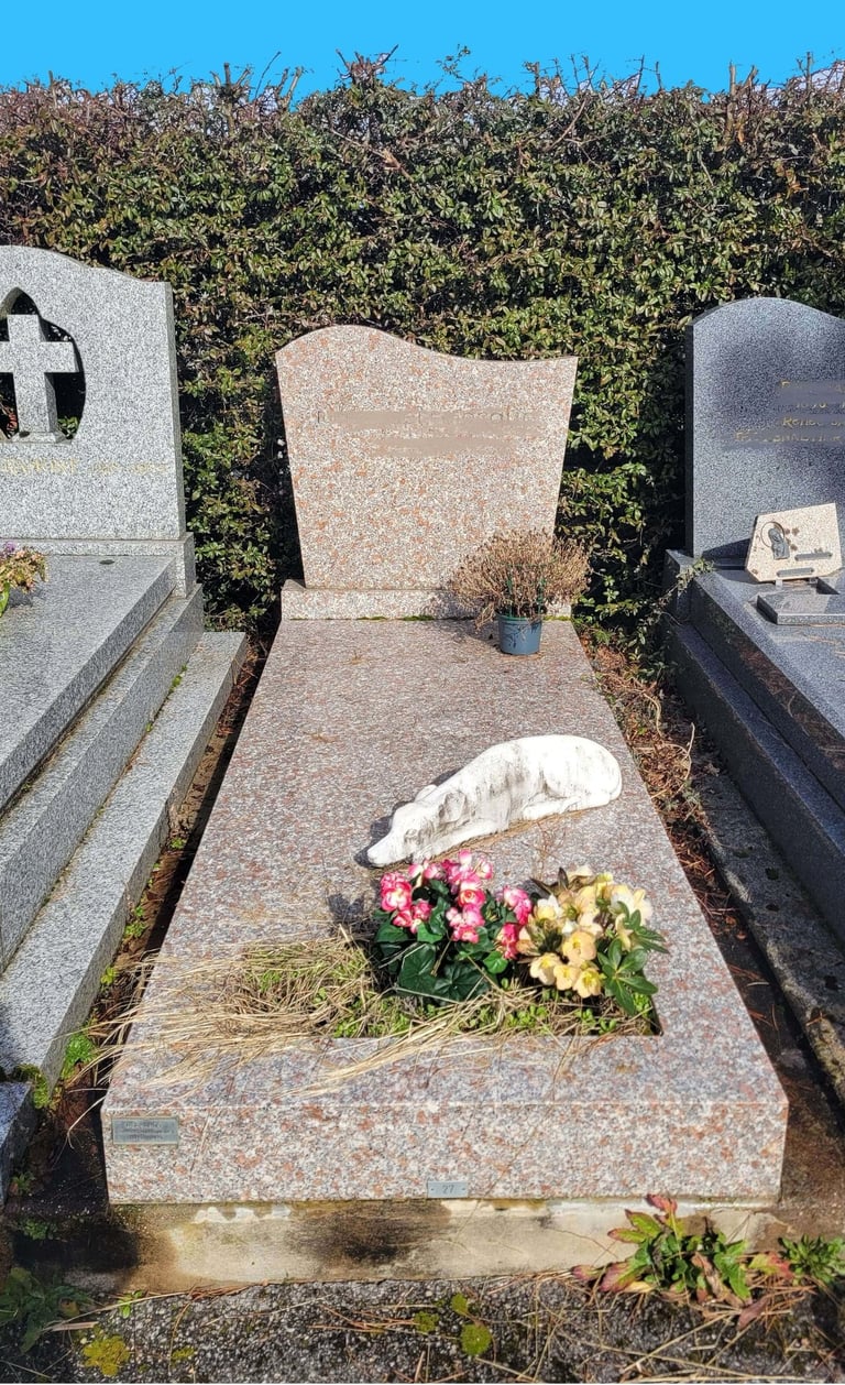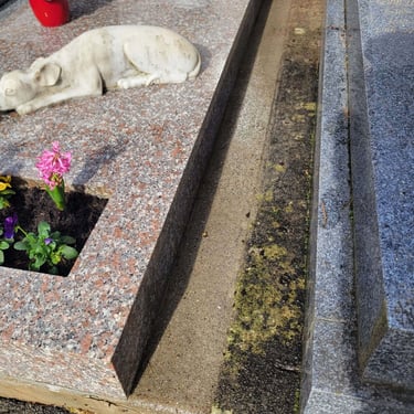 une tombe dans un matériau autre que le marbre-granit (ciment, pierre calcaire ou carrelage)